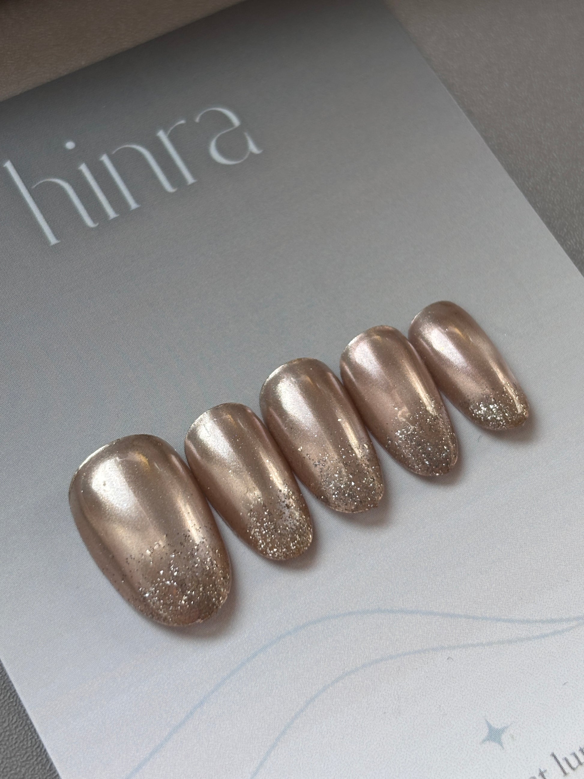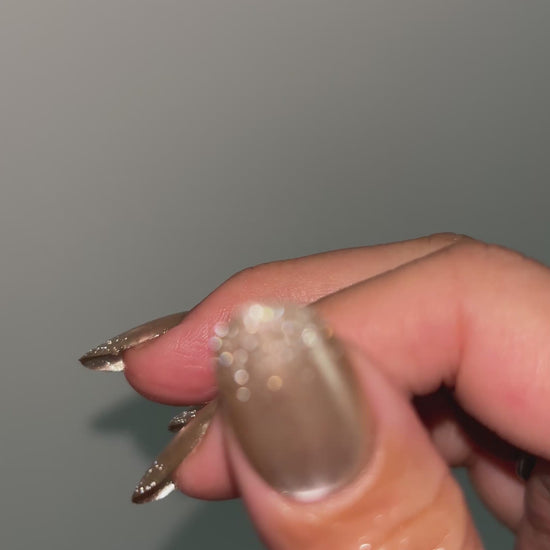 Champagne glow with a touch of sparkle. Soft, luminous, and effortlessly refined.