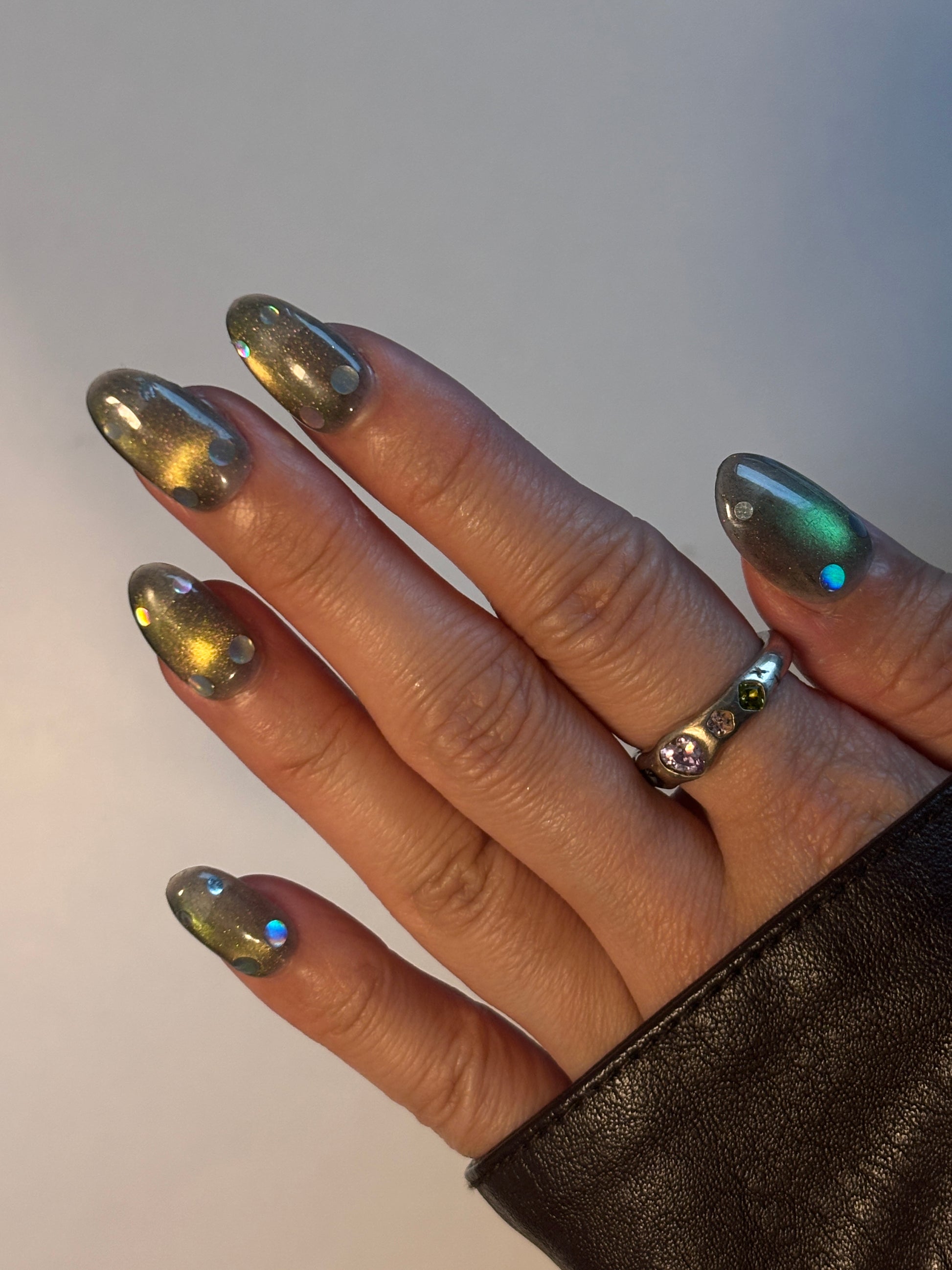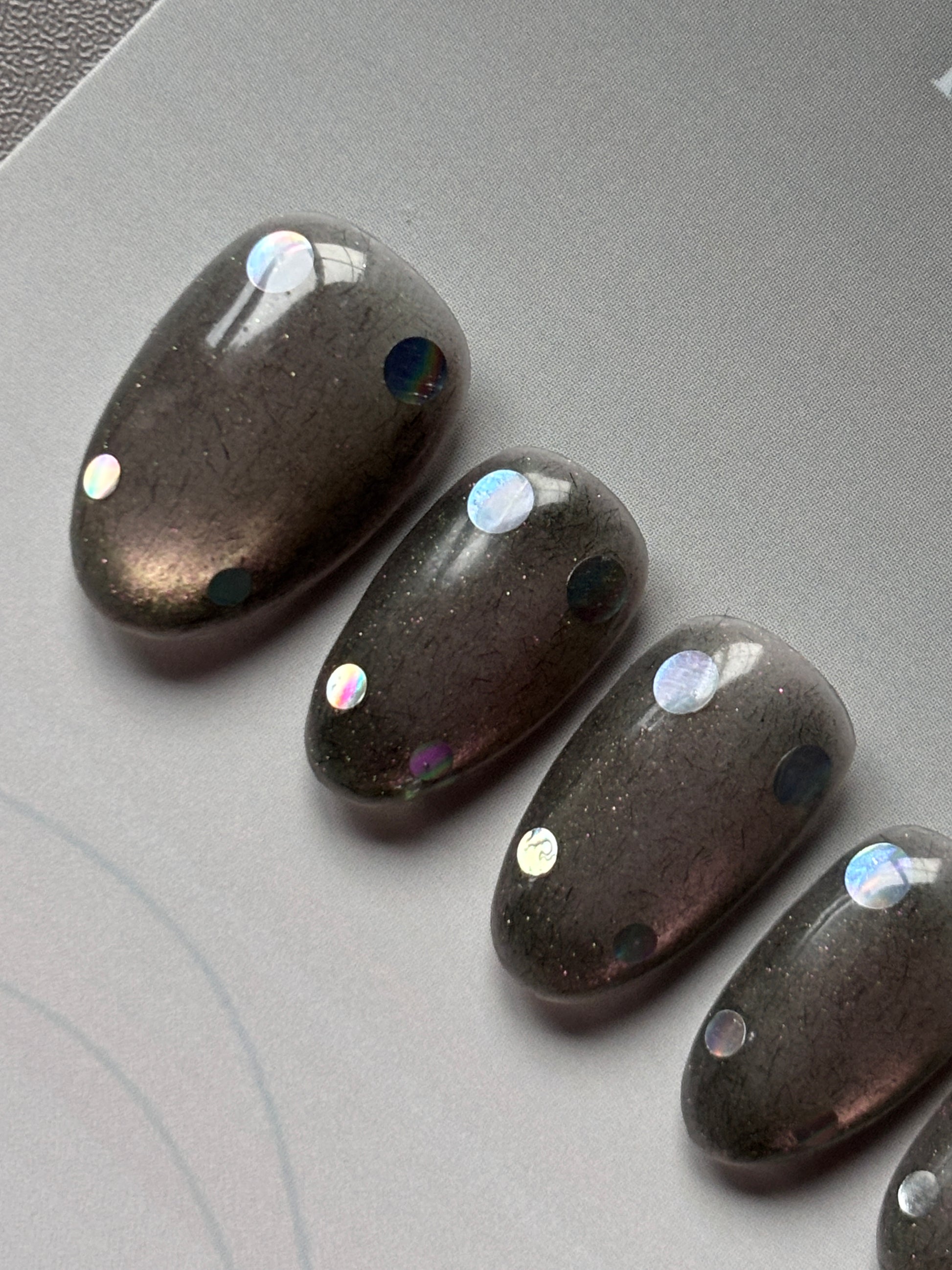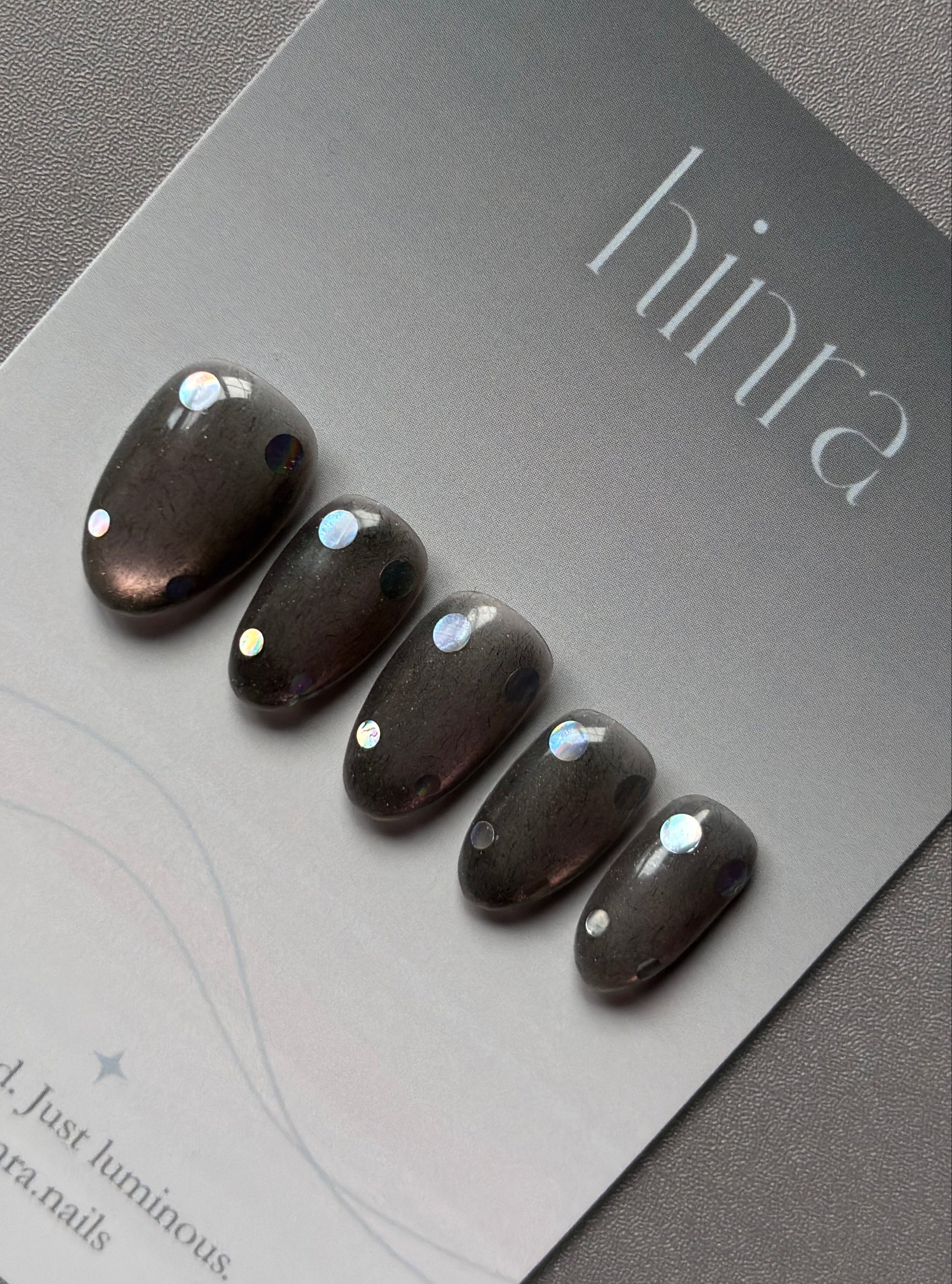 Soft shimmer, muted tones, and light-catching dots. A delicate accent piece designed for effortless pairing.