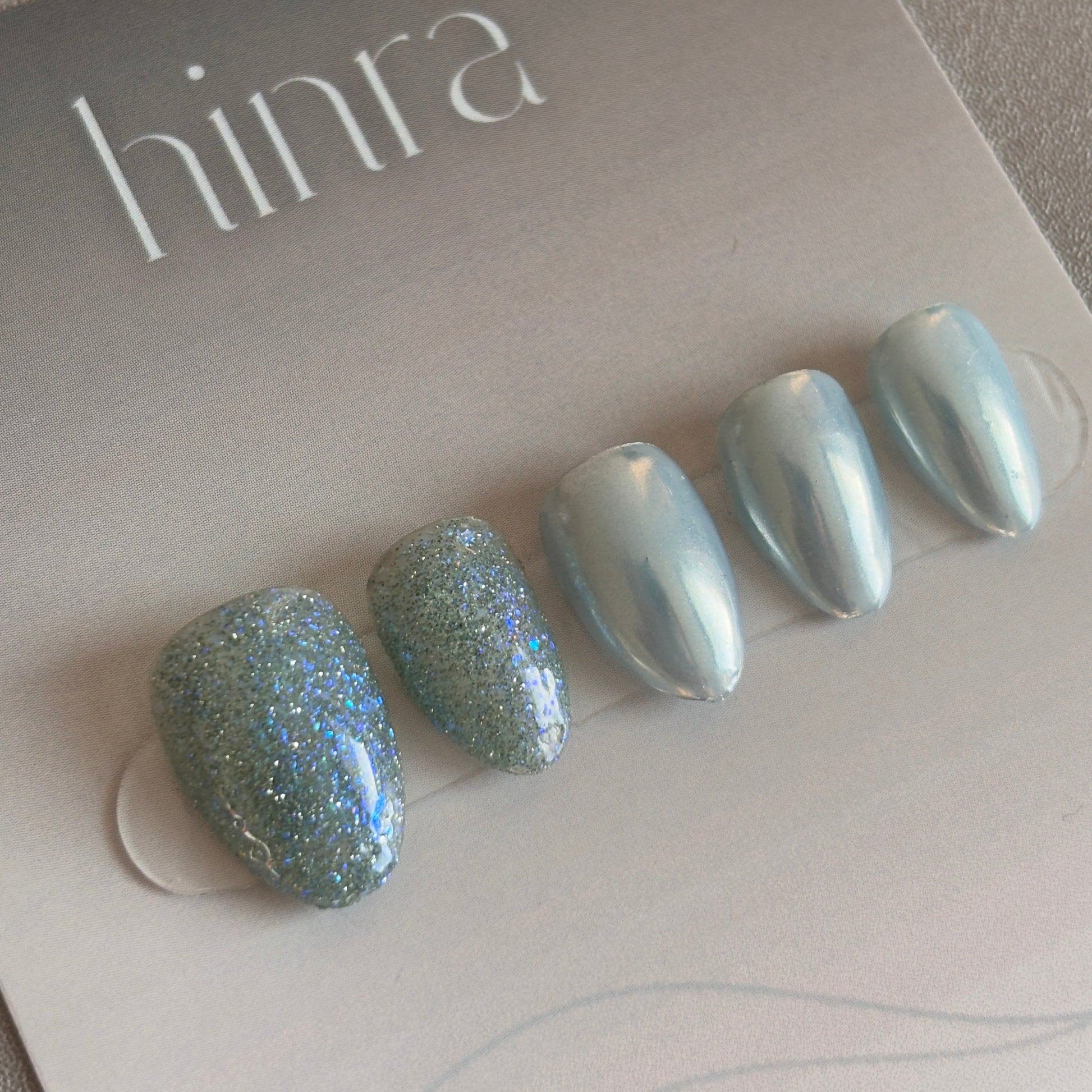 A serene blend of chrome blue and holographic sparkle — capturing the calm and radiance of a starlit night.
