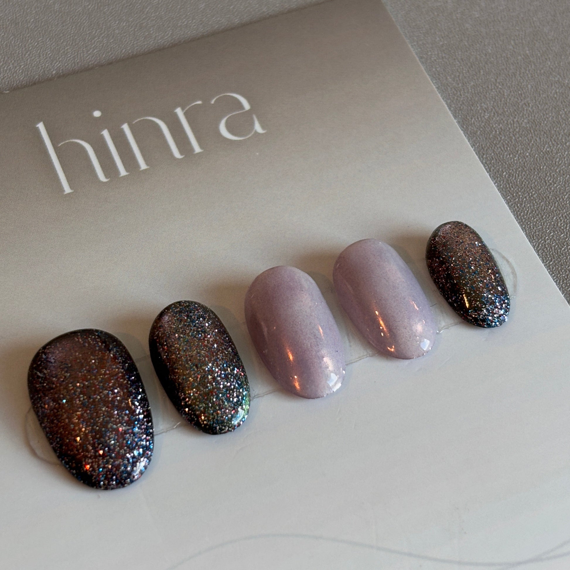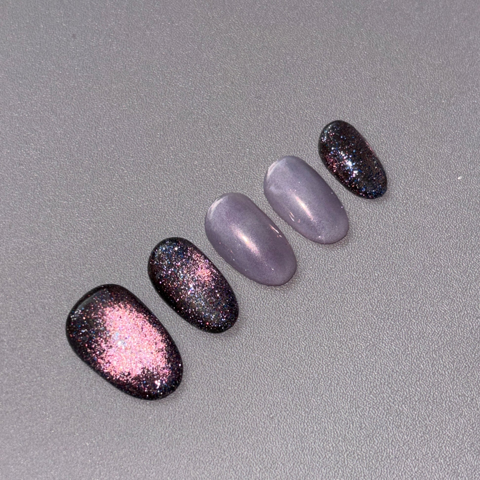 Silent Glow captures quiet elegance and luminous depth. Soft lilac meets deep cosmic shimmer — subtle, serene, and beautifully refined.